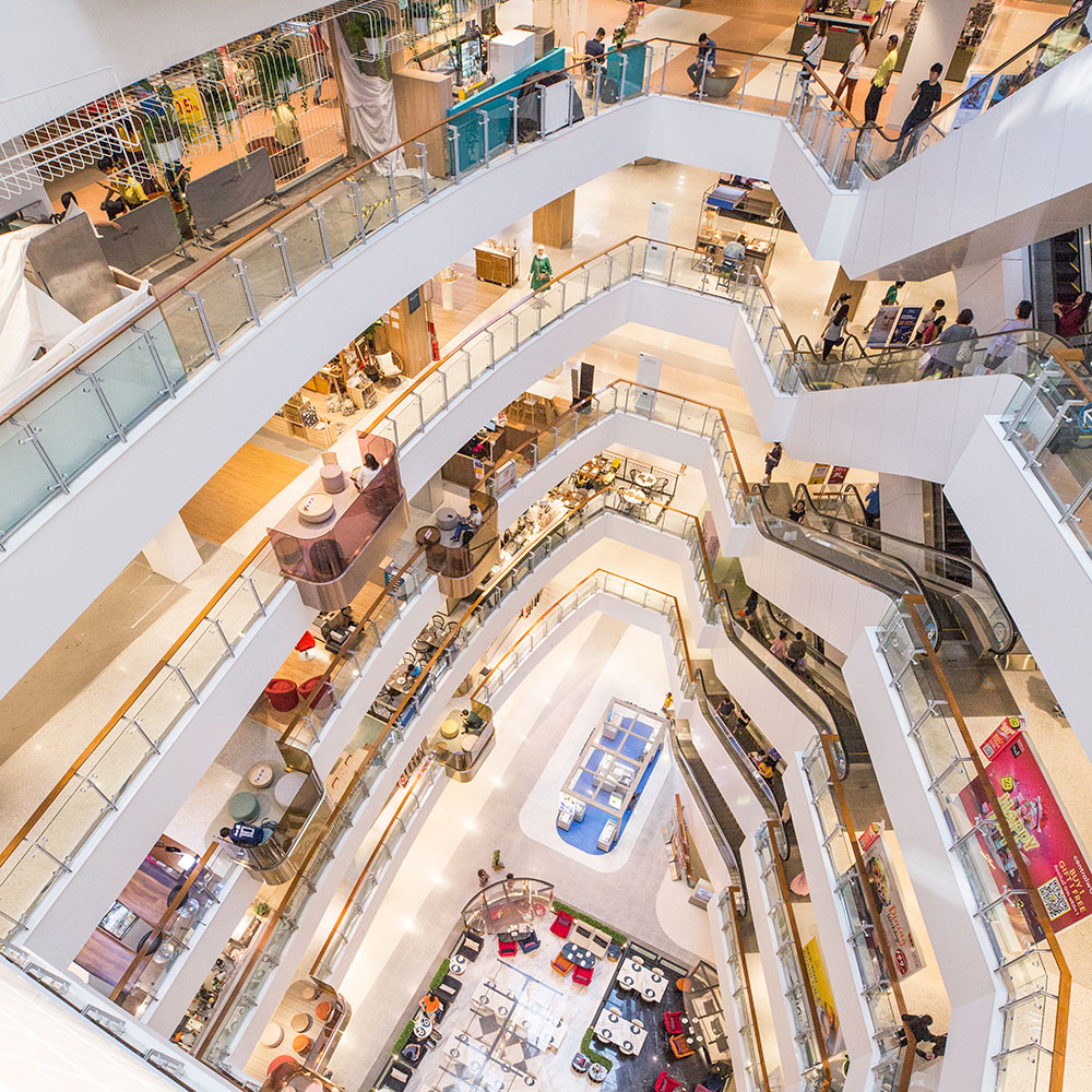 Two leading department stores – Zen Megastore and Isetan – are seamlessly integrated into the space, which also connects to a five-star hotel and a prime office tower.