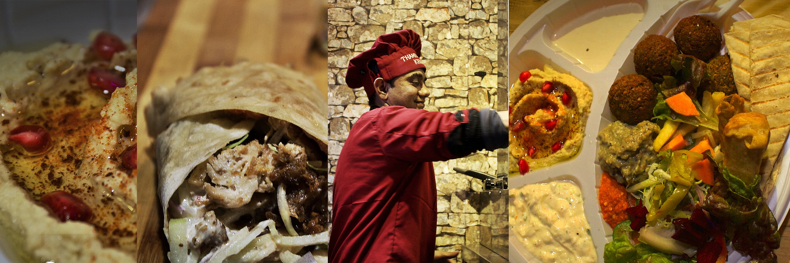 Our main food are kebab and falafel. We are using the fresh organic green vegetables in our wraps. We are specialized in preparing the hummus, tahini, garlic sauce, salsa and chimichuri sauce, which we make our-self with a great passion and dedication. The bread used for the wrap is prepared in our own kitchen which you will love for its softness and taste.