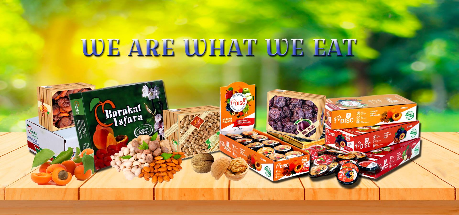 Фабрика «Баракат-Исфара» производит широкий ассортимент сухофруктов: курагу (сушеные абрикосы), компотные смеси, резаные сухофрукты, сушеное яблоко, шиповник сушеный и другие самые популярные сухофрукты. Продукция изготавливается из сырья, выращенного в экологически чистом районе, не содержит ГМО и консервантов.