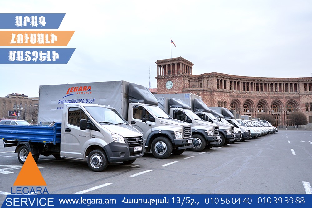 "Legara" transportation company was founded in March of 2003. The company deals with cargo transportation, as well as leases minivans and buses in Armenia, Artsakh and Georgia. All the cars of the company "Legara" are insured, as well as their drivers and passengers. The trucks have got loading capacity of 500kg up to 2 tons, and the buses and minivans can carry 7-50 passengers. "Legara" transportation company employs only experienced drivers of more than 10 years of working experience in cargo transportation and tourism. If necessary we also provide advice, and the friendly dispacther of the company is always willing to assist you to choose the most appropriate car. More than 15 buses and minivans belong to "Legara", as well as 40 trucks. We are happy to provide you with our cars for long and comfortable journeys. Company "Legara" can also lease its cars for travelling to Artsakh, Western Armenia and Georgia. If desired you can be accompanied by experienced guides, who will introduce you to the rich culture and history, traditions of Armenia and they will tell you about the legends and myths of our people. All the vehicles of our company are in a very good technical condition. "Legara" transportation company is always ready to provide you its services and works with each customer individually. We provide a porter service as well. Manpower will make Your order much easier and will bring it to the end. Contact us and we'll take care about Your rest, as well as safe transportation of Your goods. We offer trucks of the following models: Gazelle (up to 2 tons), Gazelle-Next (up to 2 tons), Ford (up to 1.5 tons), Mercedes (up to 1.5 tons), Gaz 53 (up to 3.5 tons), Zil (up to 5 tons), Gazon-Next (up to 6 tons), Kamaz (up to 10 tons), DAF (up to 10 tons), Jack (up to 8 tons), Jack (up to 2 tons). We also offer buses and minivans: Ford (15 seats), Nissan-Urvan (7-11 seats), Nissan Civilian (21-29 seats), Hyundai (21-29 seats), Mercedes Sprinter (18 seats), Yutong (25 seats, 32 seats, 50 seats), Jack (29 seats). You have addressed correctly - "Legara" frieght and transportation company.