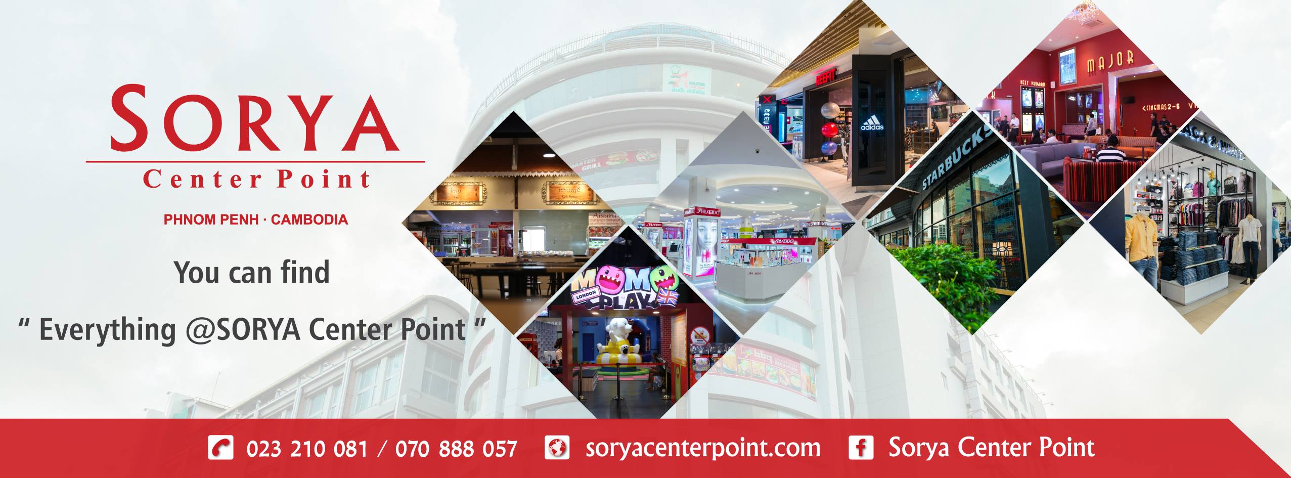 Since 2003, SORYA Center Point has kept up with changing times and involved into a substantial, leading domestic shopping center. Today SORYA Center Point continues to embrace change and invests significant local and international resources to grow its business. The Company is driven by its heartfelt desire to grow and in line with this, has ventured into a board range of business improvement initiatives as a way to move forward. Over the past 15 years, the company has served Cambodians as a brand leader in the retail industry and continues to draw discerning shoppers attracted by its pleasant ambience and strategic location in Phnom Penh’s main financial hub.